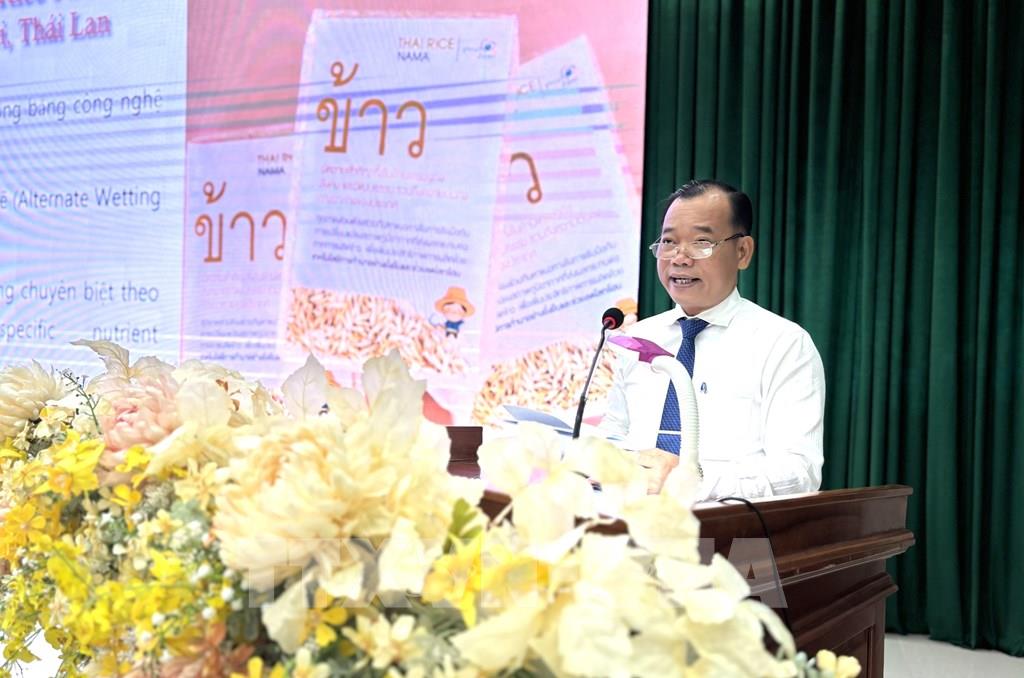 Ông Lê Chí Thiện - Phó Giám đốc Sở Nông nghiệp và Môi trường tỉnh Đồng Tháp nêu các giải pháp cho chuyển đổi xanh của Đồng Tháp. Ảnh: Hồng Nhung - TTXVN