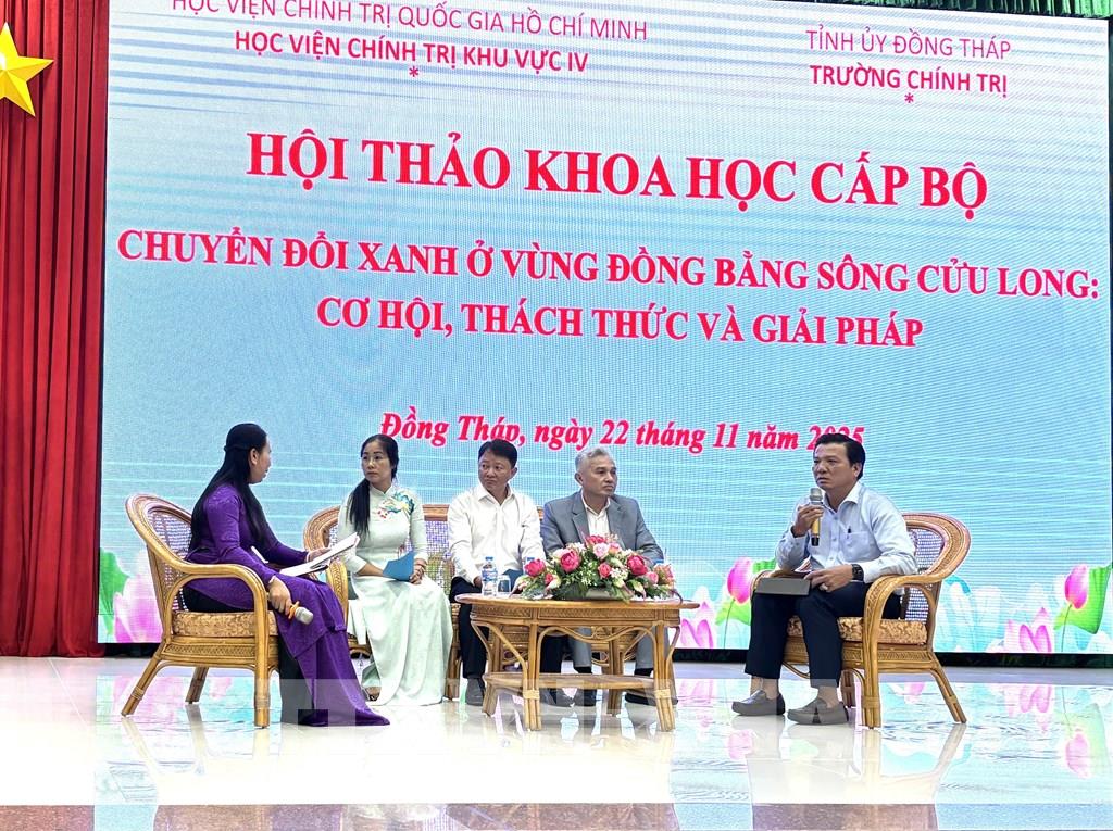 Nghị quyết số 13-NQ/TW của Bộ Chính trị về phương hướng phát triển kinh tế – xã hội và bảo đảm quốc phòng, an ninh vùng đồng bằng sông Cửu Long đến năm 2030, tầm nhìn đến năm 2045 xác định, xây dựng vùng trở thành "vùng phát triển năng động, bền vững, sinh thái, văn minh, giàu bản sắc"; đặt ra yêu cầu tổ chức lại không gian phát triển theo các tiểu vùng sinh thái, thích ứng với biến đổi khí hậu; phát triển nông nghiệp sinh thái, kinh tế tuần hoàn, kinh tế xanh; gắn tăng trưởng kinh tế với bảo vệ môi trường, bảo đảm tiến bộ, công bằng xã hội và giữ gìn văn hóa sông nước.Vì vậy, khi chuyển đổi xanh, khu vực Đồng bằng sông Cửu Long xác định đây không chỉ là một chương trình bảo vệ môi trường, mà là quá trình tái cấu trúc toàn diện mô hình phát triển. Đó là sự chuyển đổi từ cách tiếp cận lấy khai thác tài nguyên theo chiều rộng và tăng sản lượng bằng mọi giá sang cách tiếp cận tôn trọng quy luật tự nhiên, "thuận thiên" sử dụng hiệu quả tài nguyên, coi trọng chất lượng, giá trị gia tăng và tính bền vững.