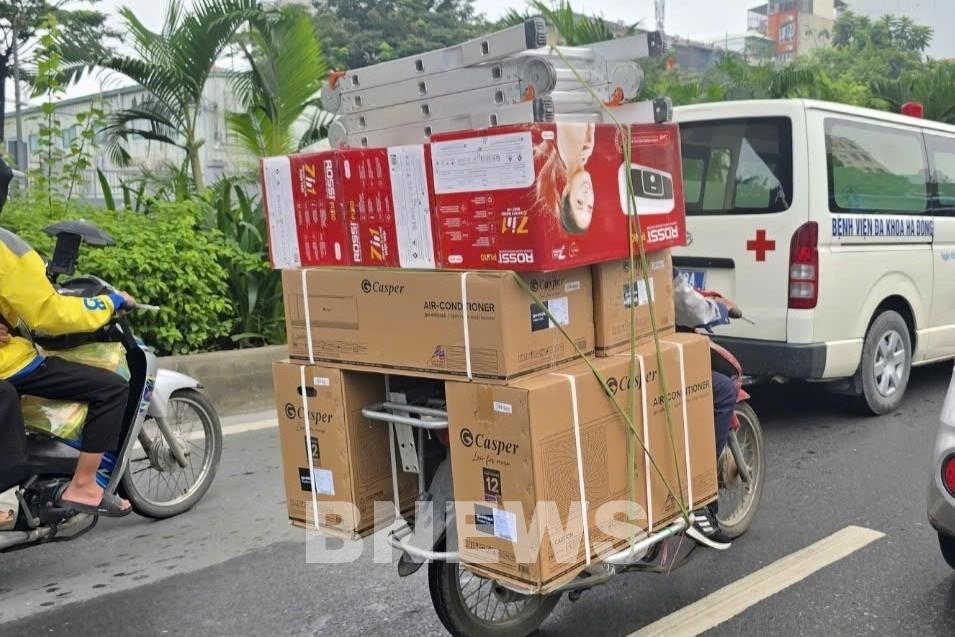 Xe máy chở hàng - sinh kế của hàng triệu người dân khắp cả nước đang phụ thuộc vào phương tiện này. Ảnh: Văn Xuyên/BNEWS/TTXVN