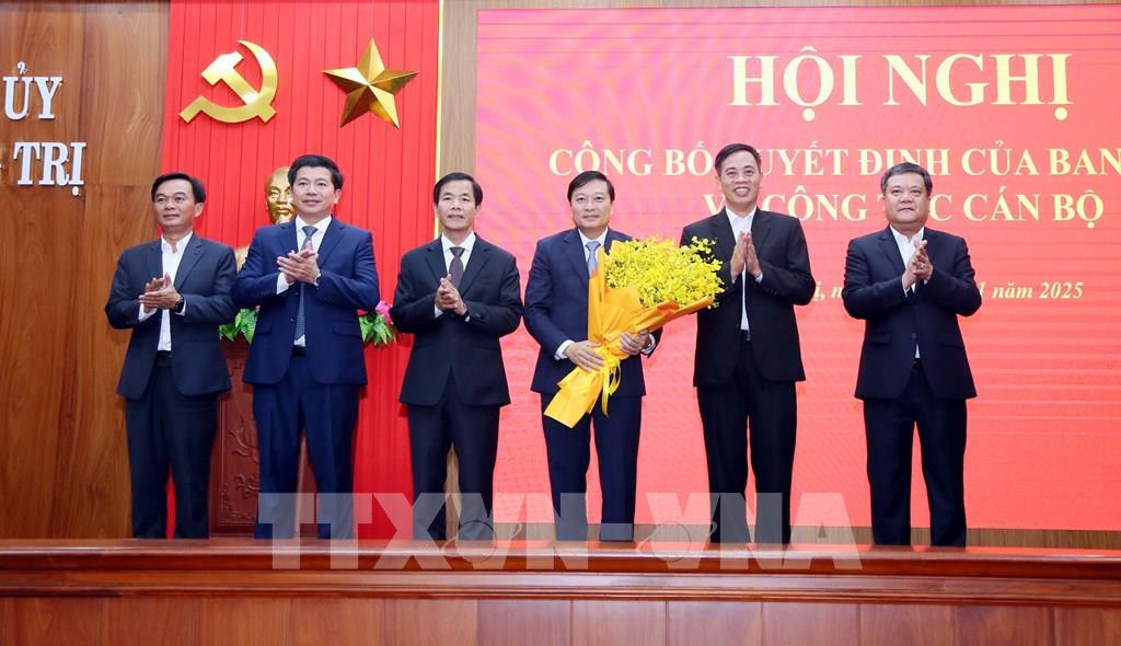 Ban Thường vụ Tỉnh ủy Quảng Trị chúc mừng đồng chí Lê Hồng Vinh. Ảnh: Tá Chuyên – TTXVN