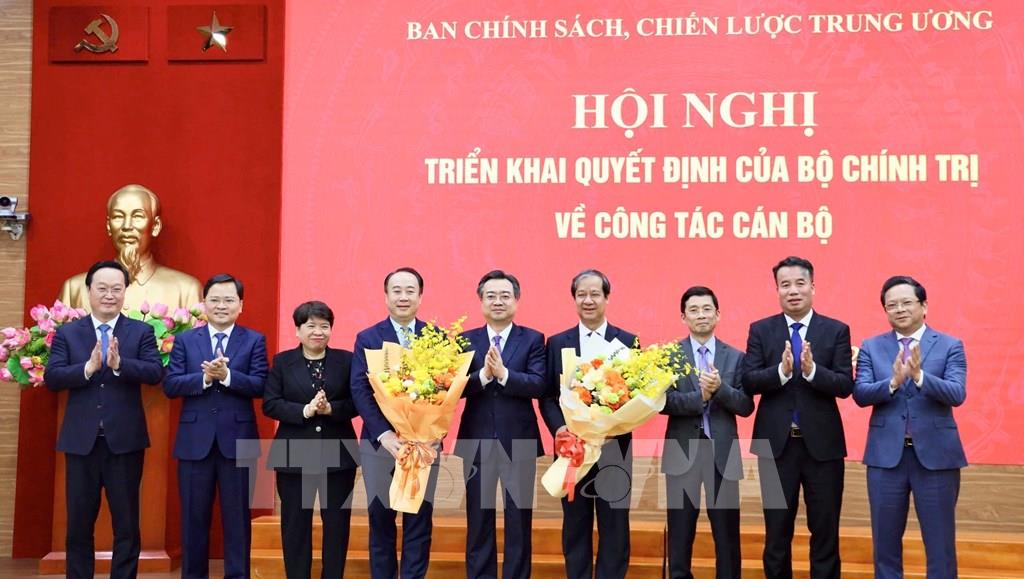 Lãnh đạo Ban Chính sách, chiến lược Trung ương tặng hoa chúc mừng đồng chí Nguyễn Kim Sơn và đồng chí Nguyễn Sỹ Hiệp . Ảnh: Phương Hoa - TTXVN
