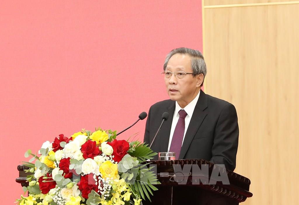 Đồng chí Hoàng Đăng Quang, Ủy viên Trung ương Đảng, Phó Trưởng ban Thường trực Ban Tổ chức Trung ương, phát biểu tại hội nghị công bố quyết định của Ban Bí thư về công tác cán bộ ở Ninh Bình. Ảnh: Đức Phương - TTXVN