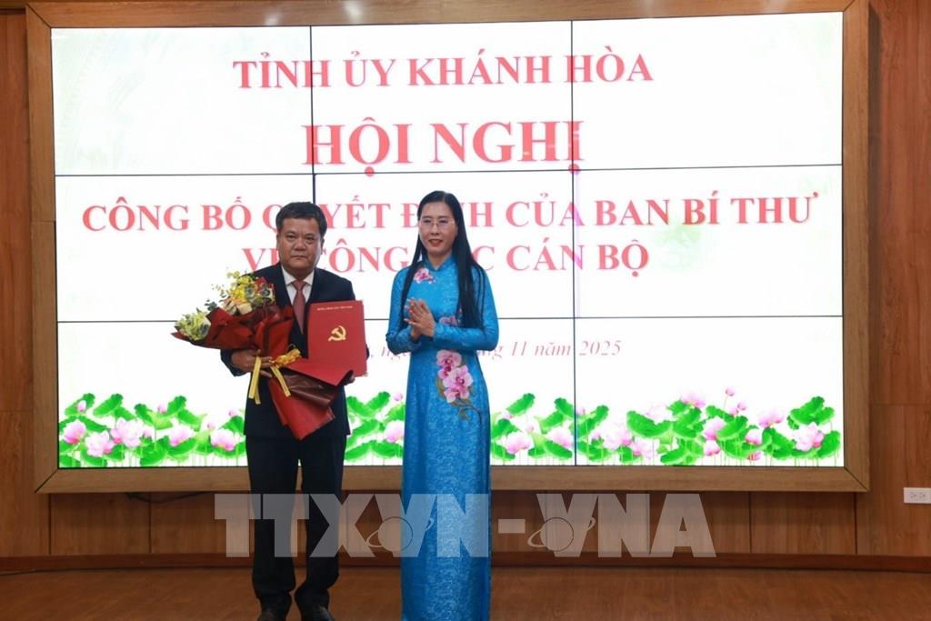 Phó Trưởng Ban Tổ chức Trung ương Bùi Thị Quỳnh Vân trao Quyết định chỉ định Phó Bí thư Tỉnh ủy Khánh Hòa cho đồng chí Trần Phong. Ảnh: Xuân Triệu - TTXVN