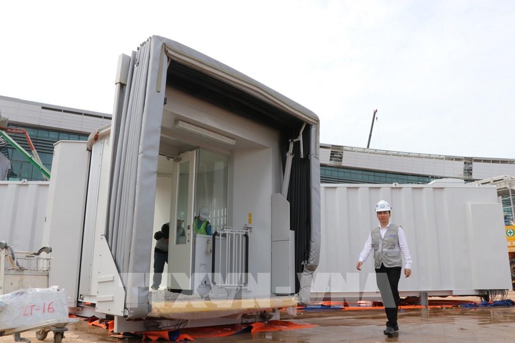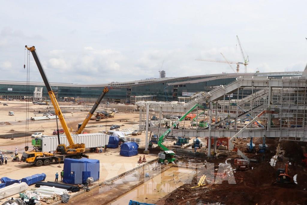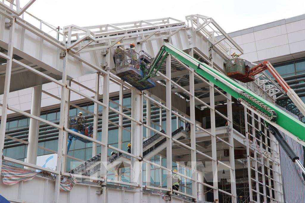 Hoàn thiện cầu ống lồng nhà ga hành khách sân bay Long Thành. Ảnh: Công Phong - TTXVN