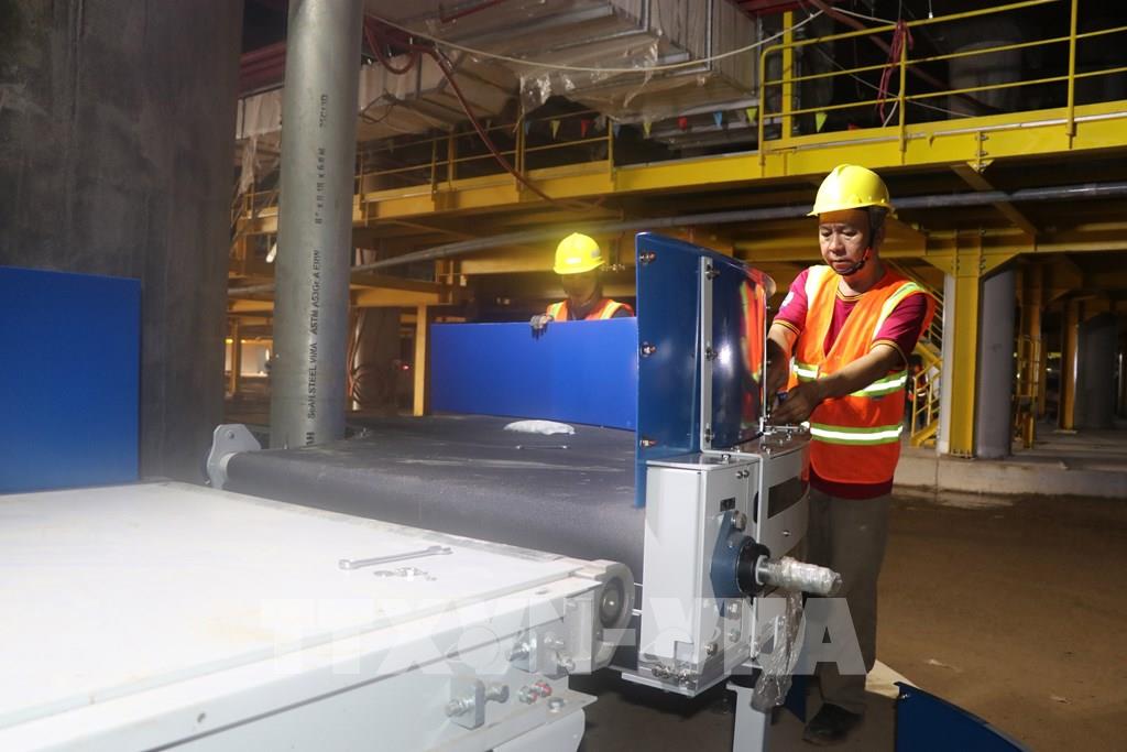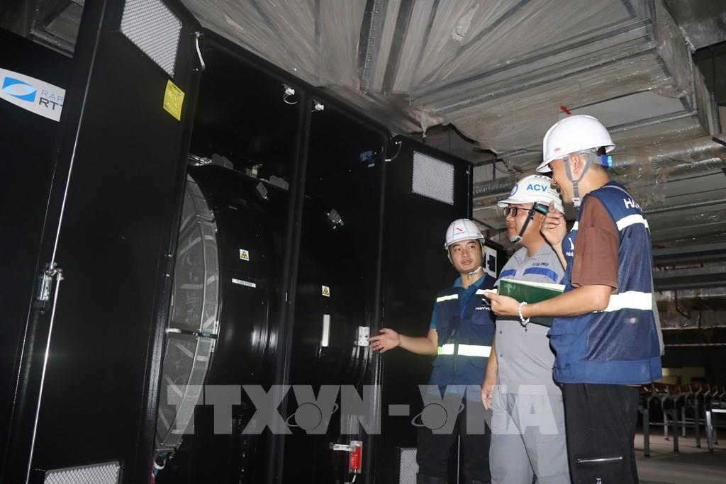 Kiểm tra các bộ phận bên trong máy soi chiếu hành lý xách tay, trước khi lắp đặt. Ảnh: Công Phong - TTXVN