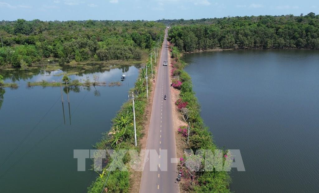 Đường 761 đi qua hồ Trị An, tới đây, hướng tuyến đường từ cầu Mã Đà đến đường Vành đai 4 - Thành phố Hồ Chí Minh sẽ bám Đường 761. Ảnh: Công Phong - TTXVN