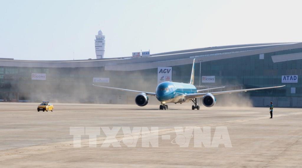 Chiếc máy bay thương mại đầu tiên đáp xuống Sân bay Long Thành đánh dấu cột mốc quan trọng trong việc hoàn thiện hạ tầng và kiểm tra kỹ thuật tại cảng hàng không lớn nhất Đông Nam Á. Ảnh: Sỹ Tuyên - TTXVN