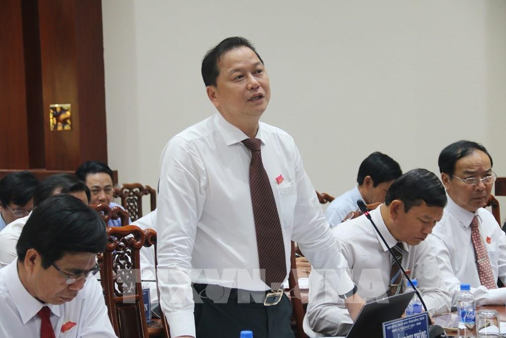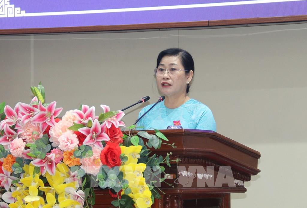 Bà Châu Thị Mỹ Phương, Chủ tịch HĐND tỉnh Đồng Tháp, phát biểu tại Kỳ họp. Ảnh: Đức Tâm - TTXVN