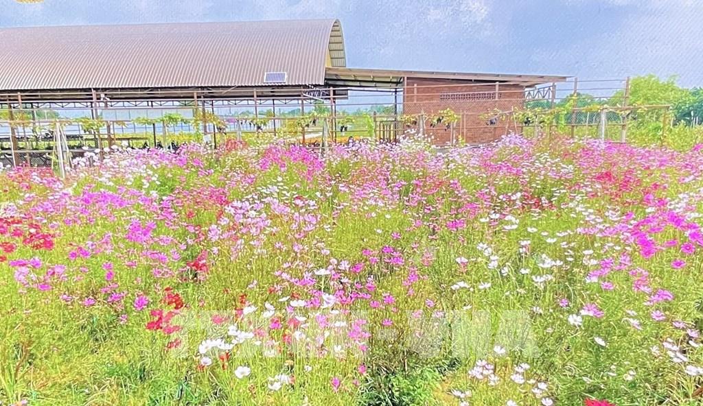 Cánh đồng hoa sao nhái tại Khu du lịch sinh thái Miền Tây Lodge được chăm sóc kỹ lưỡng tạo điểm check in cho du khách. Ảnh: Hồng Nhung - TTXVN
