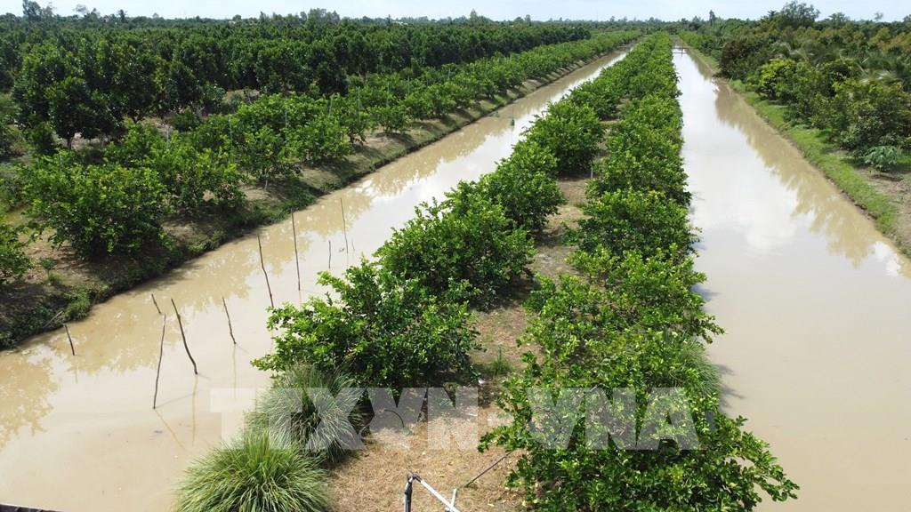 Vườn chanh không hạt ở Mỹ Hiệp, tỉnh Đồng Tháp. Ảnh: Nhựt An - TTXVN