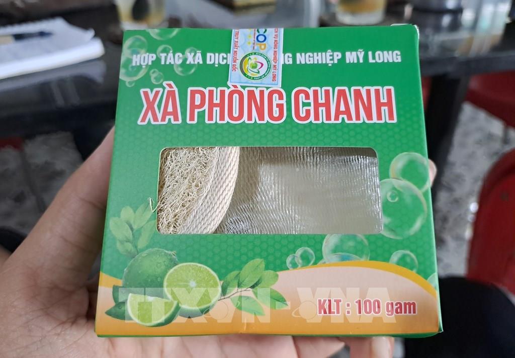 HTX Dịch vụ nông nghiệp Mỹ Long sản xuất xà phòng chanh và từng bước được thị trường chấp nhận. Ảnh: Nhựt An - TTXVN