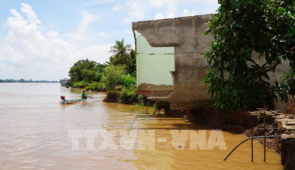 Điểm sạt lở bờ sông Tiền, thuộc ấp Tân Quới, xã Tân Long, tỉnh Đồng Tháp. Ảnh: Nhựt An - TTXVN