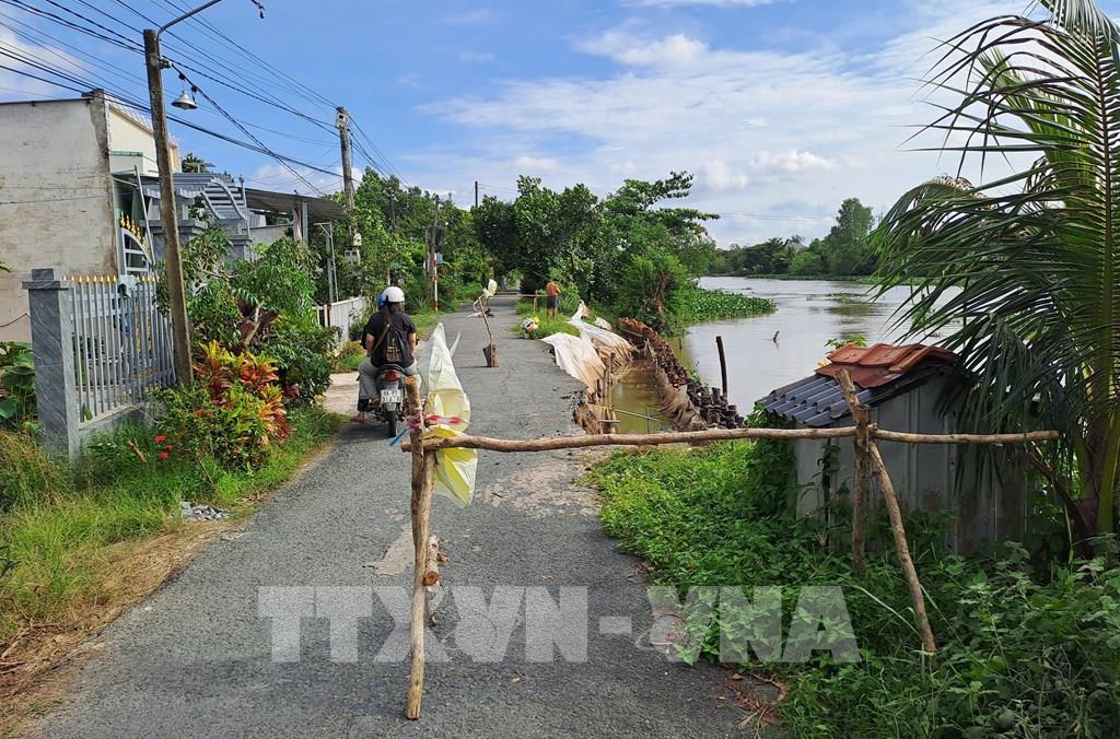 Sạt lở bờ sông Cần Lố (thuộc phường Mỹ Trà, tỉnh Đồng Tháp) “ăn” sâu vào đường giao thông. Ảnh: Nhựt An - TTXVN