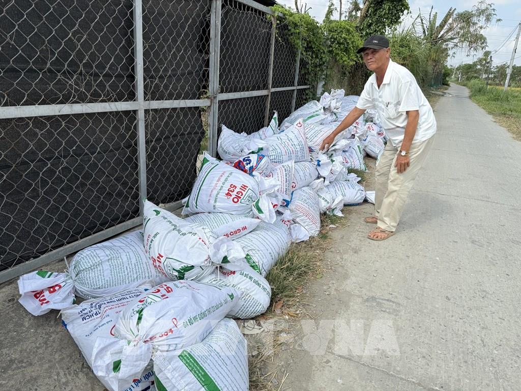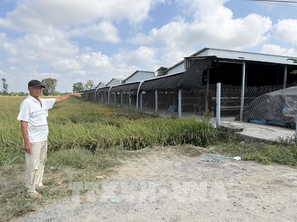 Nhiều hộ dân tại ấp Dương Hòa, xã Tân Hòa, tỉnh Đồng Tháp bức xúc trước tình trạng ô nhiễm môi trường kéo dài từ các trại nuôi gà. Ảnh: Công Trí-TTXVN