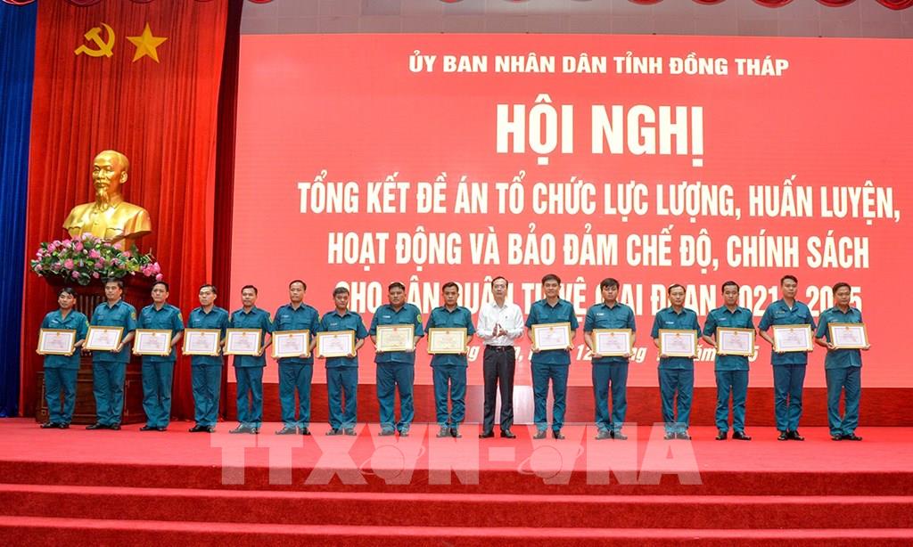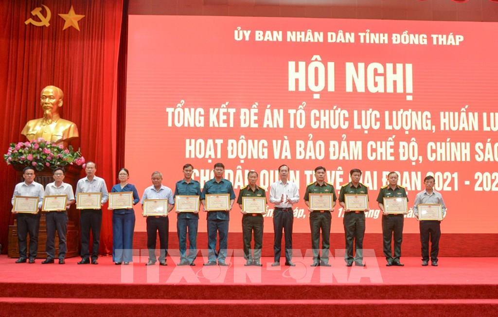 Dịp này, UBND tỉnh Đồng Tháp đã tặng Bằng khen cho các cá nhân đạt thành tích xuất sắc trong thực hiện Đề án về tổ chức lực lượng, huấn luyện, hoạt động và bảo đảm chế độ, chính sách cho dân quân tự vệ giai đoạn 2021 - 2025 ở tỉnh.