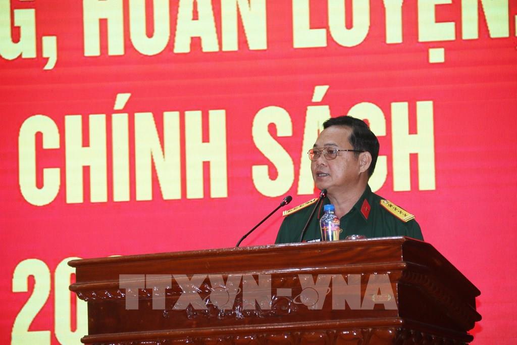 Đại tá Phạm Văn Thanh, Chỉ huy trưởng Bộ Chỉ huy Quân sự tỉnh Đồng Tháp, phát biểu tại Hội nghị. Ảnh: Đức Tâm – TTXVN