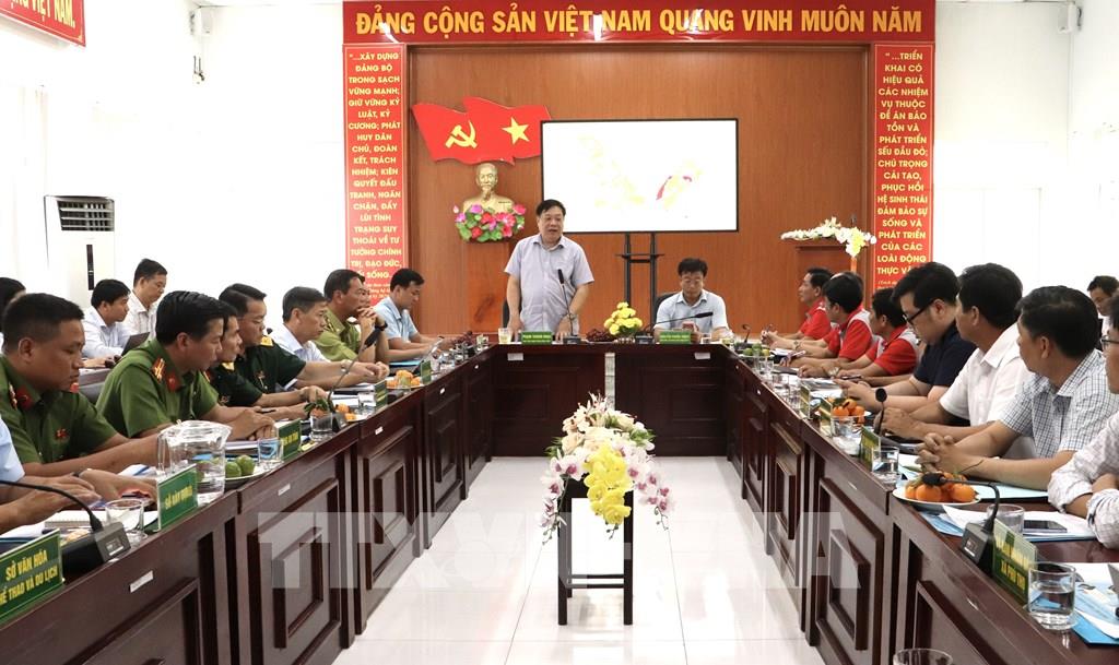 Ông Phạm Thành Ngại, Chủ tịch UBND tỉnh Đồng Tháp chỉ đạo các đơn vị phối hợp chặt chẽ trong phòng chống cháy rừng mùa khô 2026 tại Đồng Tháp. Ảnh: Hồng Nhung - TTXVN