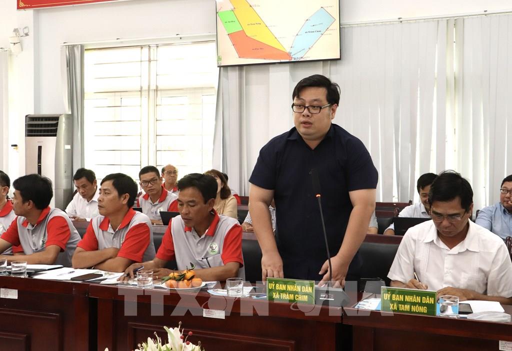 Ông Nguyễn Hồng Phong, Chủ tịch UBND xã Tràm Chim phát biểu. Ảnh: Hồng Nhung - TTXVN