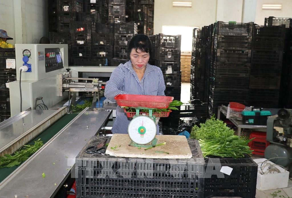 Máy đóng gói rau tự động góp phần bảo đảm an toàn cho sản phẩm rau khi đến tay người tiêu dùng. Ảnh: Hữu Chí - TTXVN