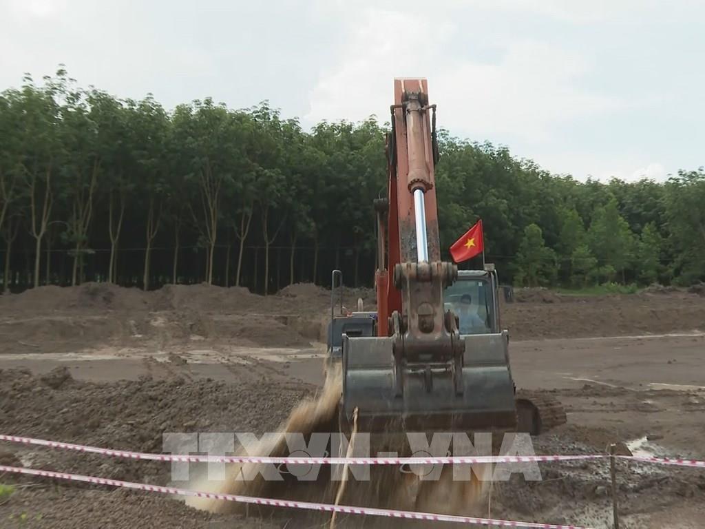 Đoạn cao tốc Gia Nghĩa-Chơn Thành qua xã Nha Bích đang thi công. Ảnh: K GỬIH-TTXVN