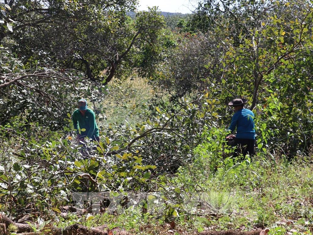 Người dân xã Đồng Tâm, tỉnh Đồng Nai cưa vườn điều bàn giao mặt bằng cao tốc Gia Nghĩa-Chơn Thành. Ảnh: K GỬIH-TTXVN