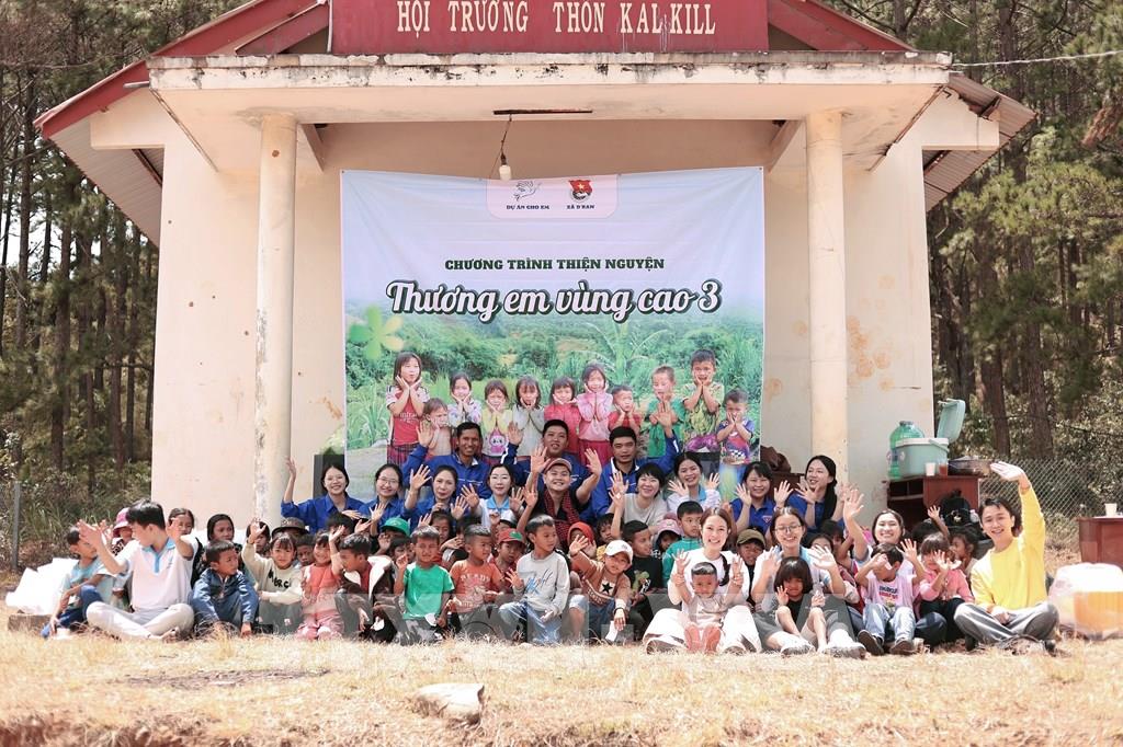 Trẻ em vùng cao chụp ảnh lưu niệm với các thành viên “Dự án cho em”. Ảnh: TTXVN phát