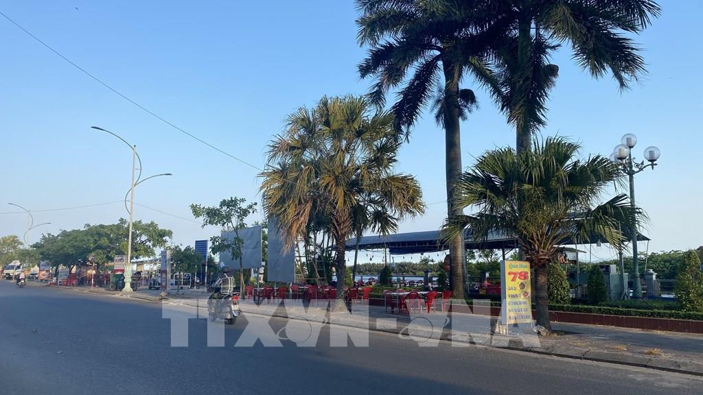 Vỉa hè đường Bạch Đằng bị lấn chiếm làm nơi buôn bán, kinh doanh. Ảnh: Tường Quân – TTXVN
