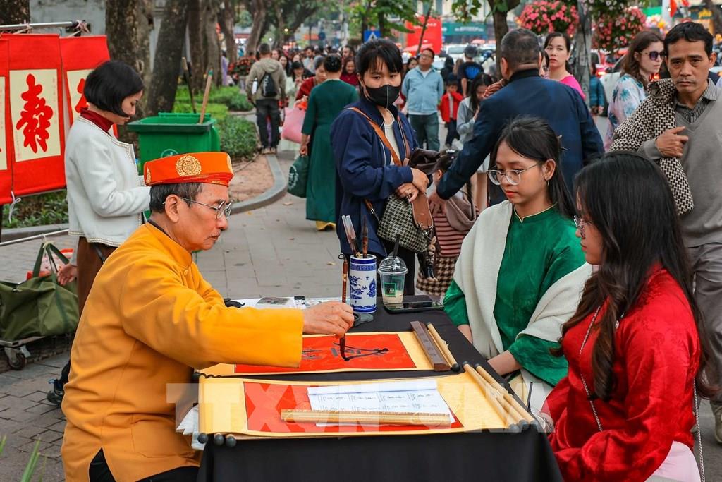 Thời tiết thuận lợi để người dân du xuân, xin chữ đầu năm. Ảnh: Hoàng Hiếu - TTXVN