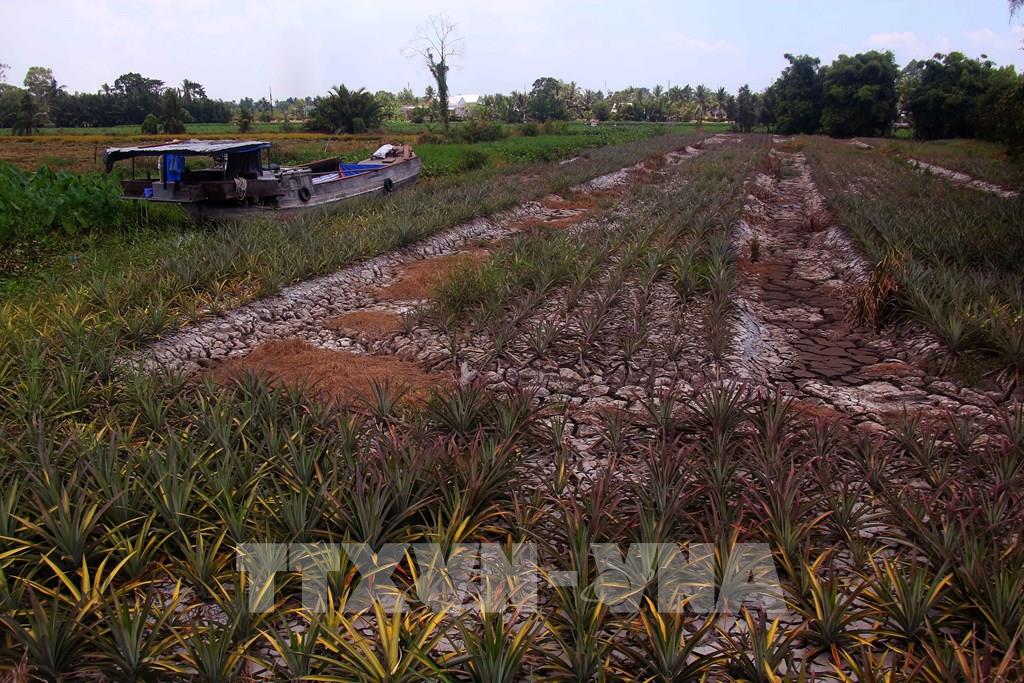Rẫy khóm tại xã Hỏa Lựu, thành phố Cần Thơ khô hạn do nắng nóng kéo dài. Ảnh: Duy Khương – TTXVN