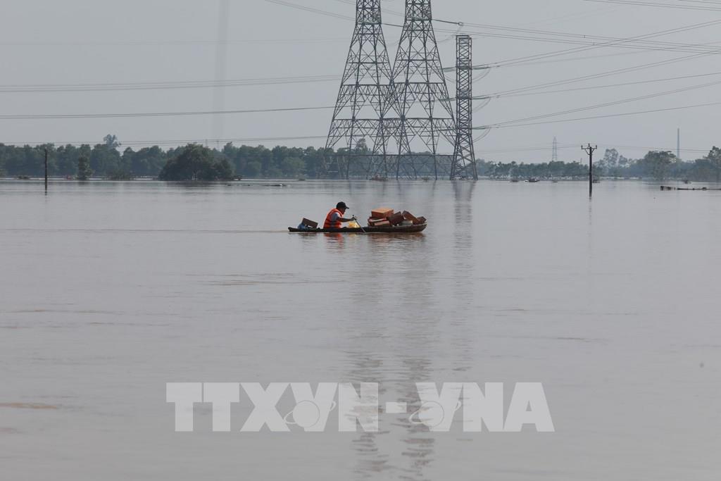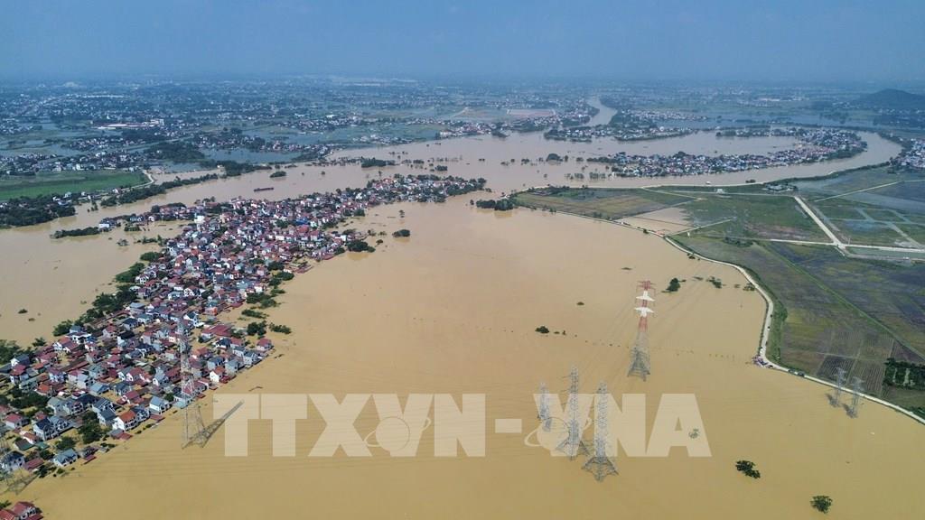 Nhiều làng mạc trên địa bàn tỉnh Bắc Ninh chìm trong biển nước do lũ sông Cầu, sông Thương vượt đỉnh lịch sử. Ảnh: Trần Việt - TTXVN