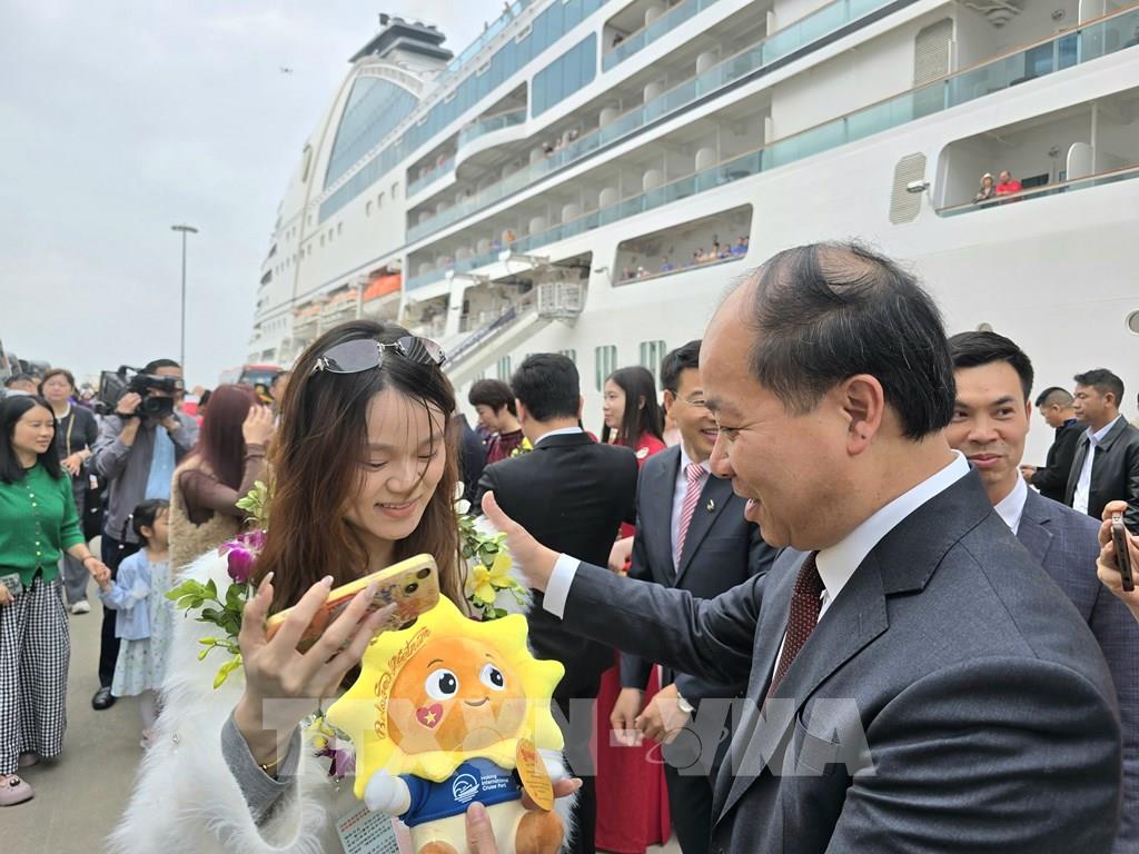 Du khách bất ngờ trước sự đón tiếp nồng hậu của Quảng Ninh. Ảnh: Thanh Vân-TTXVN