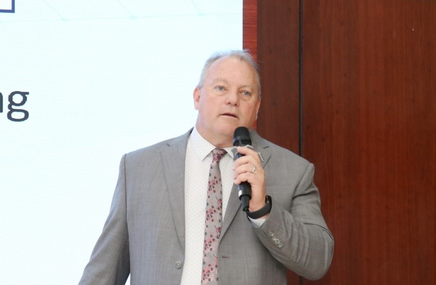 GS. TS. Robert Balch - Học viện New Mexico Tech chia sẻ nghiên cứu điển hình về việc triển khai sớm các dự án CCUS ở miền Tây Hoa Kỳ. Ảnh: Uyên Hương/Bnews