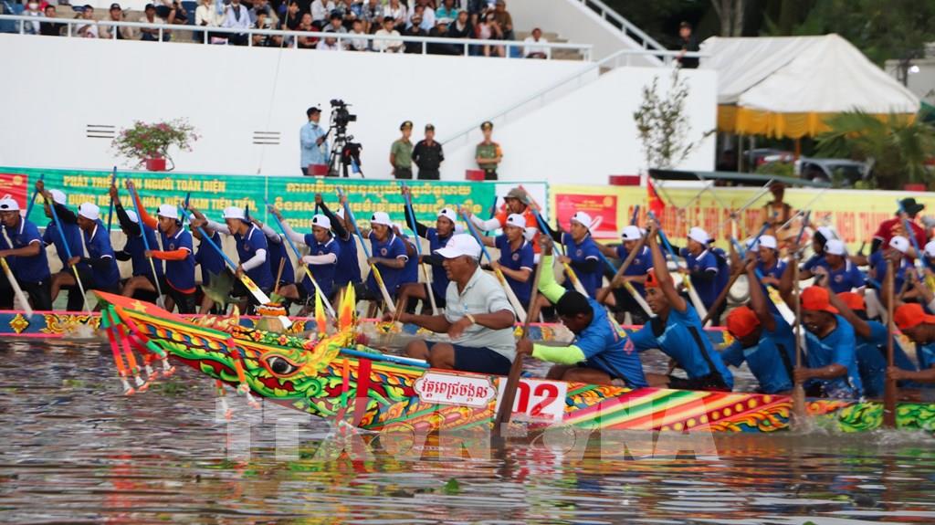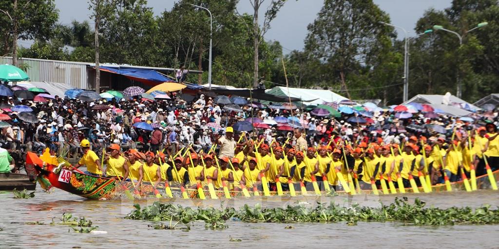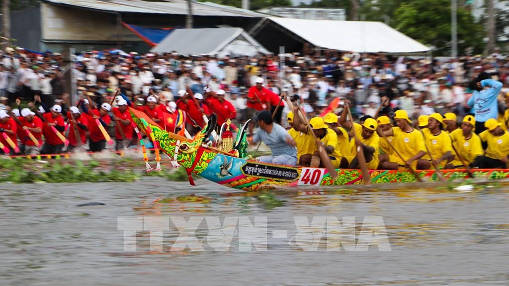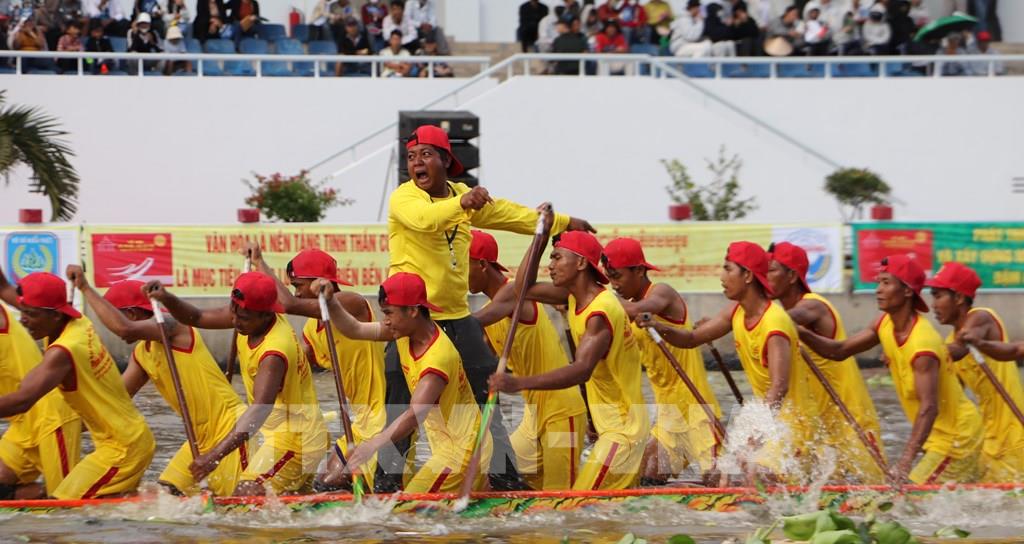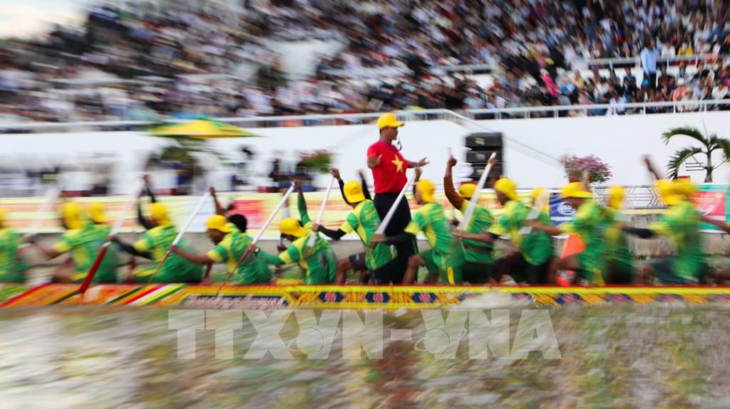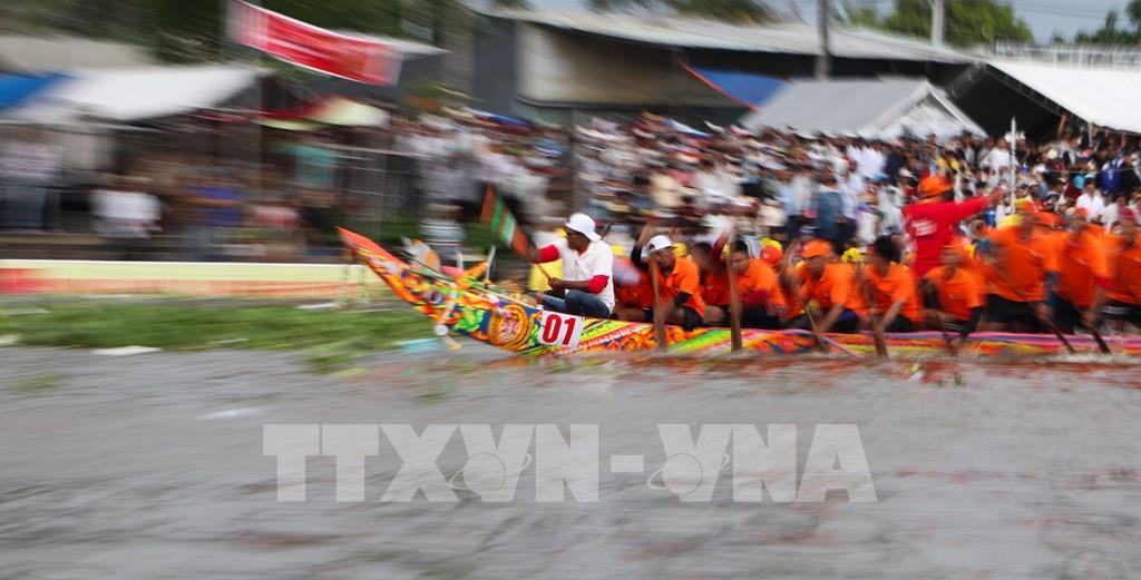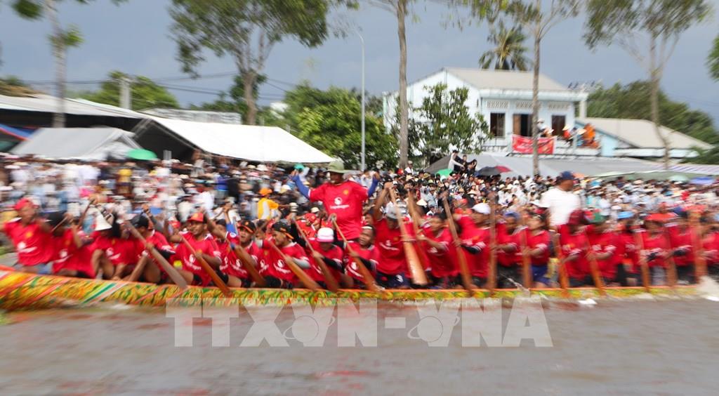 Đua ghe Ngo là môn thể thao thể hiện tinh thần đoàn kết của đồng bào Khmer Nam Bộ. Ảnh: Hồng Thái - TTXVN