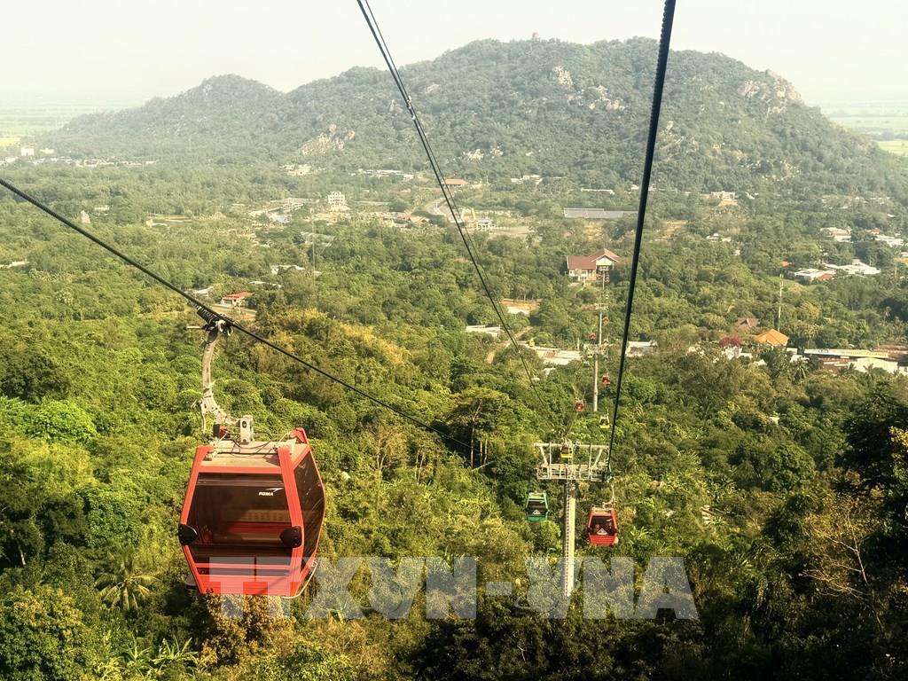 Cáp treo đưa du khách lên tham quan Khu du lịch Núi Cấm. Ảnh: Thanh Sang-TTXVN