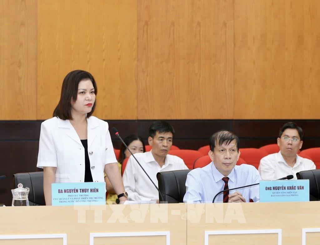Bà Nguyễn Thuý Hiền, Phó Cục trưởng Cục quản lý và Phát triển thị trường trong nước, Bộ Công Thương cập nhật thông tin chính sách tại tọa đàm. Ảnh: Mỹ Phương – TTXVN