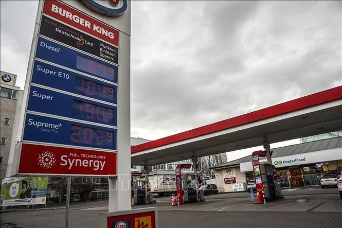 Bảng giá xăng và dầu diesel tại một trạm bán xăng ở Frankfurt, Đức. Ảnh tư liệu: THX/TTXVN
