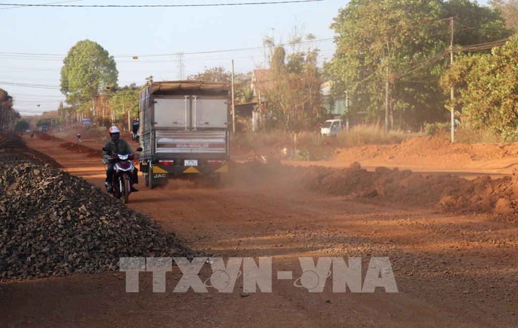 Đường vào khu công nghiệp Long Tân chỉ dài gần 1,6km nhưng làm 5 năm chưa xong khiến người dân bức xúc. Ảnh: Đậu Tất Thành – TTXVN