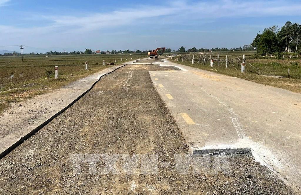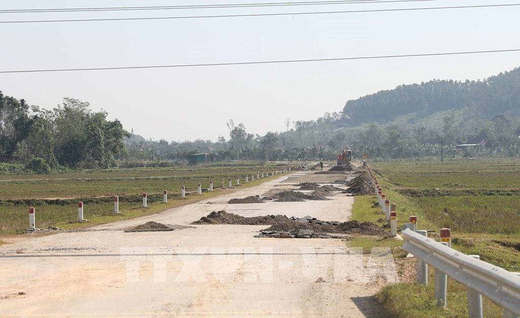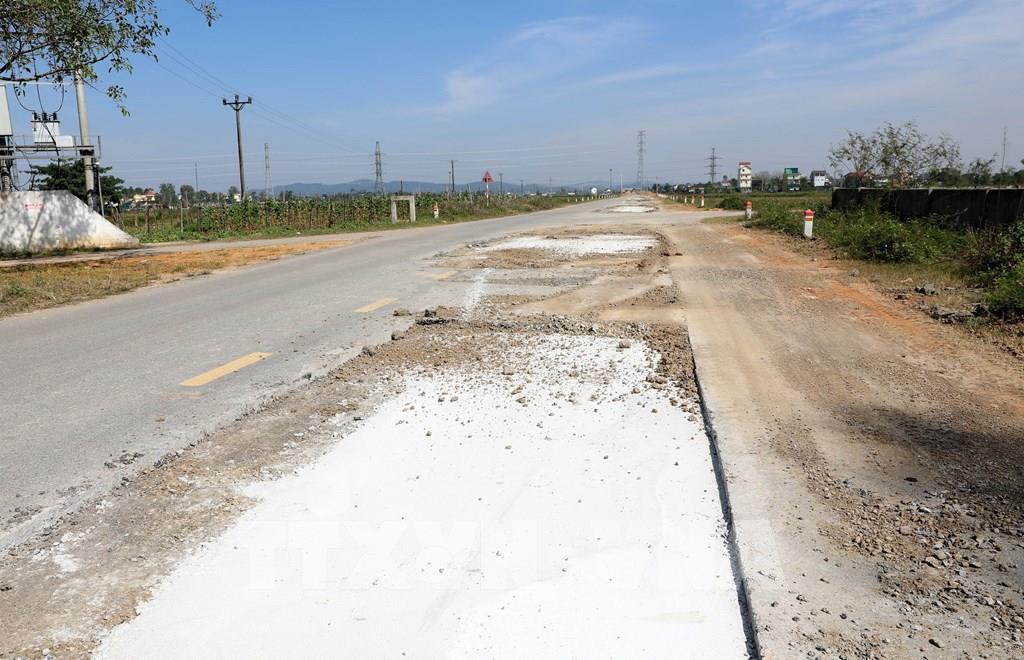 Từ khi hoàn thành thì đây đã là lần thứ 2 đơn vị thi công tiến hành sửa chữa tuyến đường. Ảnh: Văn Tý-TTXVN