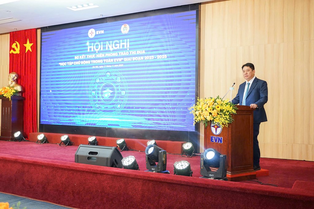 Tại hội nghị, Tổng giám đốc EVN Nguyễn Anh Tuấn thay mặt lãnh đạo Tập đoàn ghi nhận nỗ lực của các đơn vị, đội ngũ giảng viên nội bộ và sự đồng hành của Công đoàn Điện lực Việt Nam trong triển khai và thúc đẩy phong trào học tập chủ động.