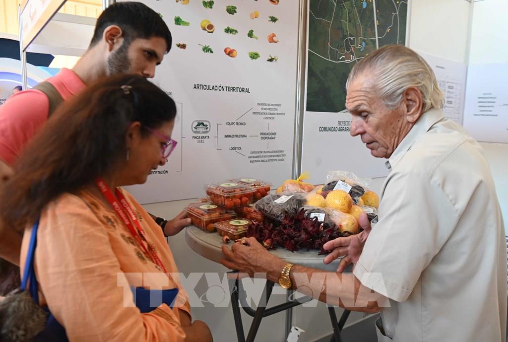Giới thiệu nông sản tại Hội chợ. Ảnh: Việt Hùng-P/v TTXVN tại Cuba