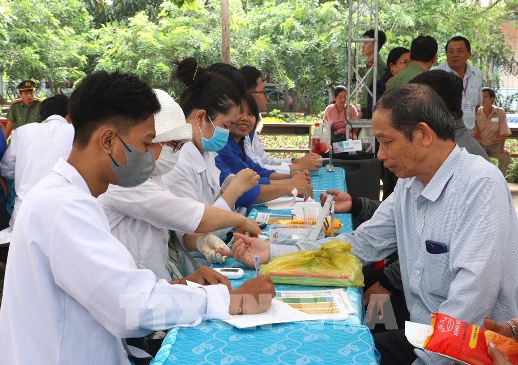Người dân đến khám bệnh miễn phí tại Trường Đại học Cửu Long. Ảnh: Lê Thúy Hằng – TTXVN