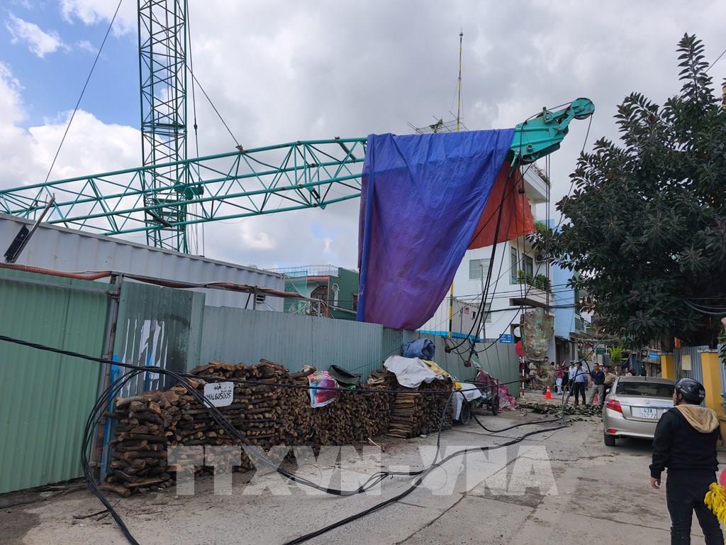 Cẩu tháp được di dời khỏi hiện trường sau sự cố. Ảnh: Quốc Dũng - TTXVN