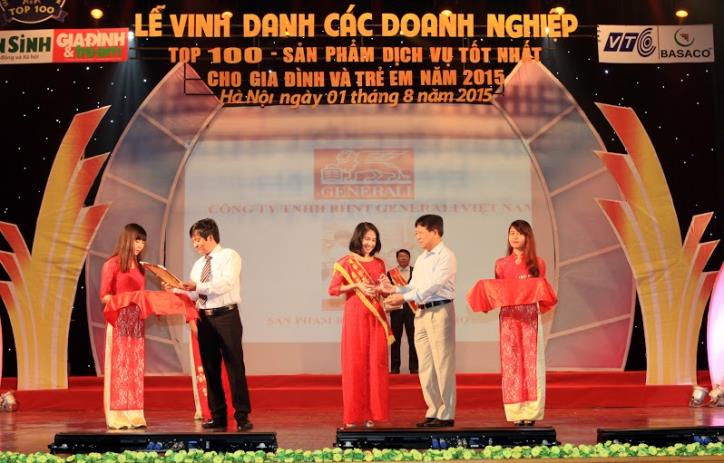 Đặc biệt, Generali Việt Nam vinh dự được Ban tổ chức bầu chọn là một trong mười doanh nghiệp tiêu biểu trong Top 100 sản phẩm dịch vụ tốt cho gia đình và trẻ em lần III, năm 2015.