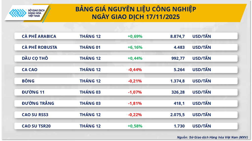 Giá cà phê Robusta bất ngờ tăng vọt hơn 6%, cắt đứt chuỗi giảm 5 phiên liên tiếp do lo ngại về nguồn cung. Ảnh: Sở Giao dịch hàng hóa Việt Nam (MXV) cung cấp