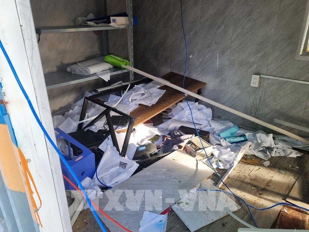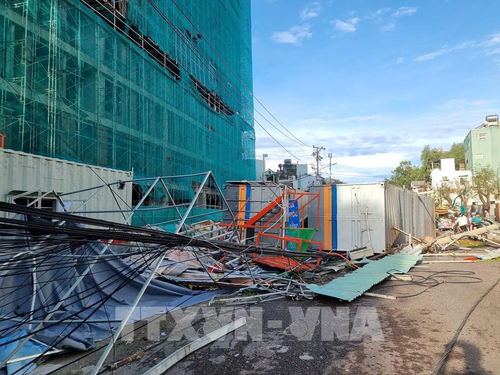 Sức gió mạnh đã làm đổ sập trụ điện, khu điều hành Dự án Simona Heights. Ảnh: Quang Thái- TTXVN