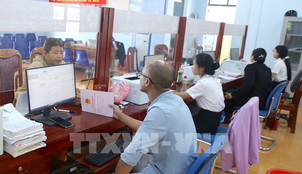 Người dân đến làm các thủ tục hành chính tại Trung tâm phục vụ hành chính công xã Đức Cơ, tỉnh Gia Lai. Ảnh: Quang Thái- TTXVN
