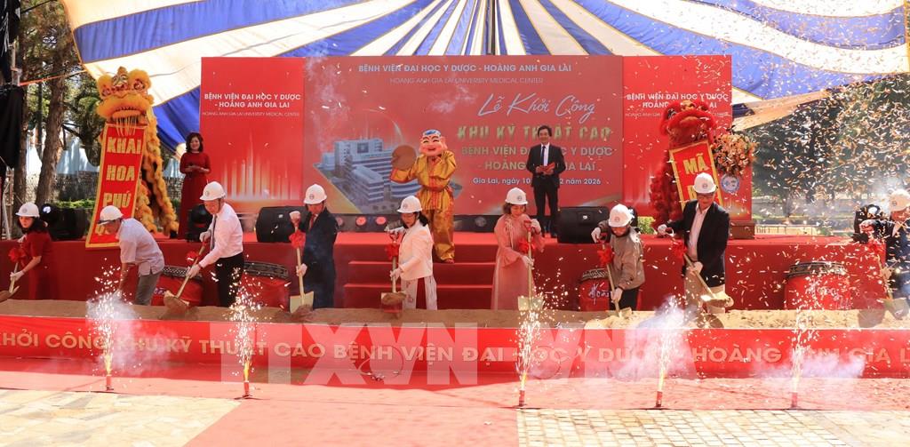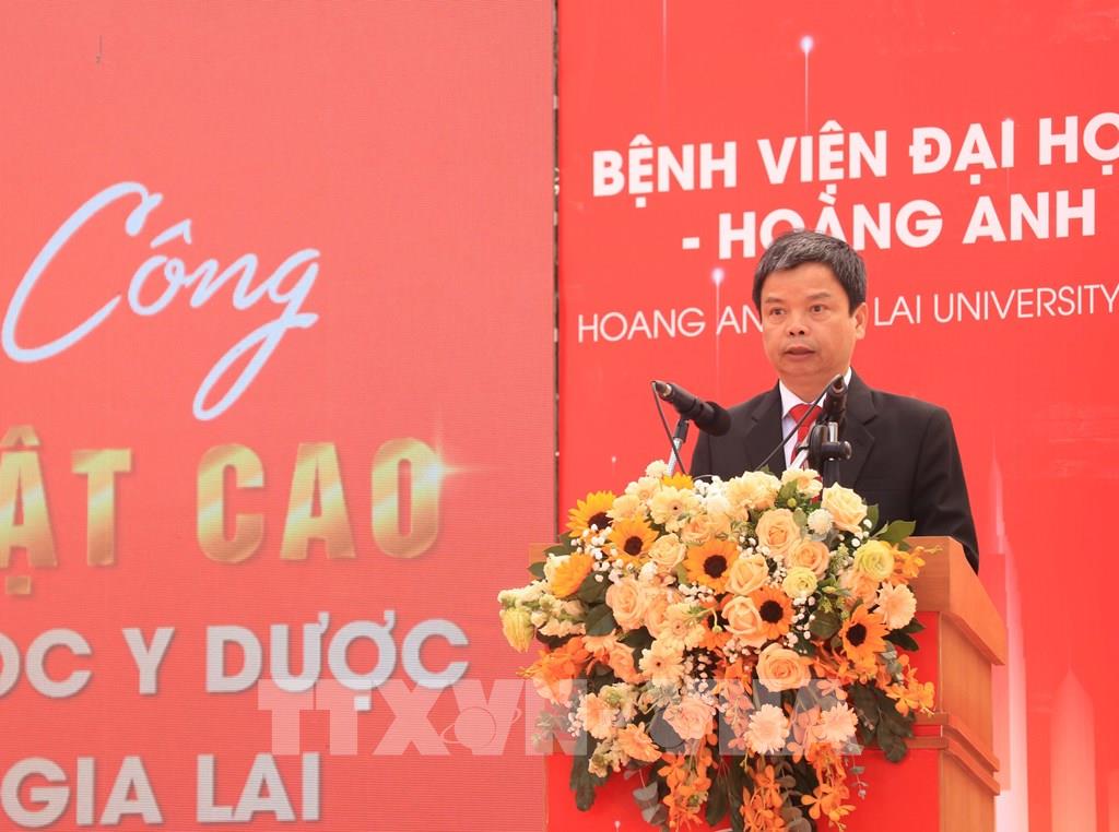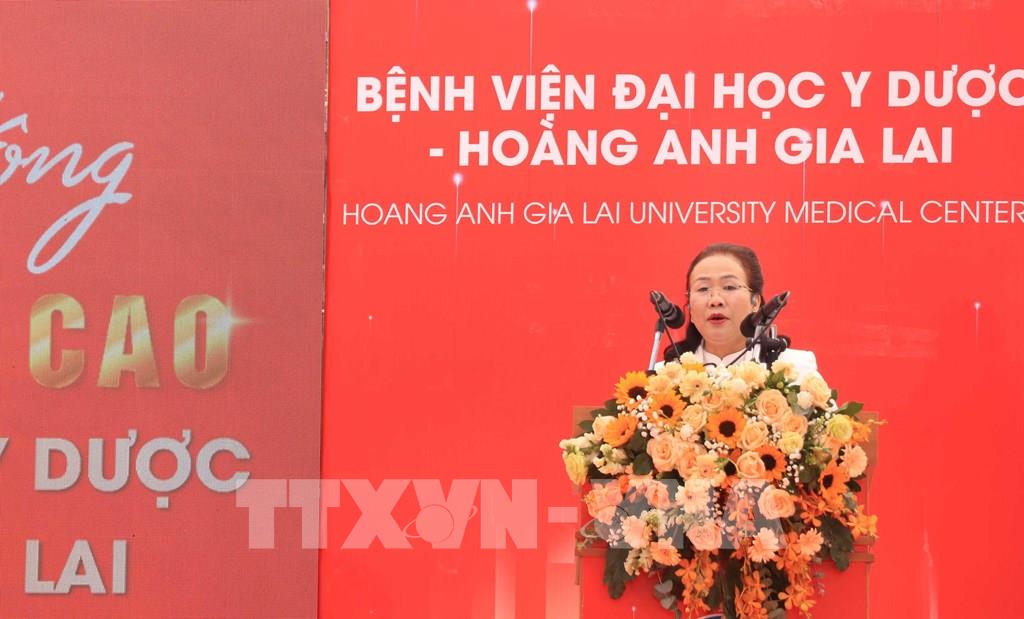 Bác sĩ CKI Nguyễn Thị Thu Thảo, Chủ tịch Hội đồng quản trị Bệnh viện Đại học Y Dược – Hoàng Anh Gia Lai phát biểu tại Lễ khởi công. Ảnh: Hồng Điệp - TTXVN