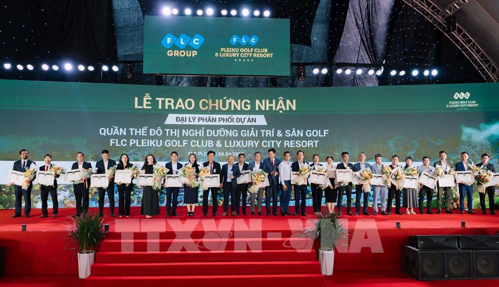 Tập đoàn FLC trao chứng nhận cho 22 đại lý phân phối chính thức tham gia phân phối dự án. Ảnh: Hoài Nam – TTXVN