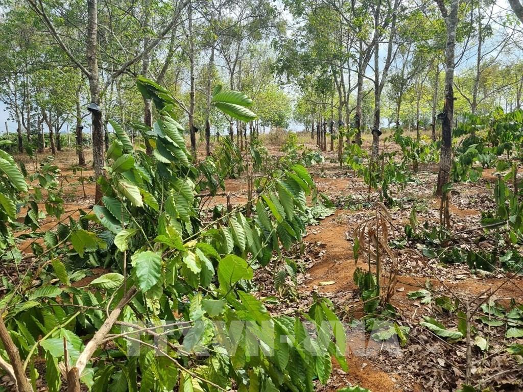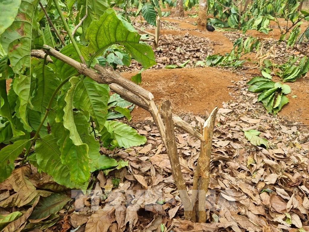 Gần 1.000 cây cà phê có tuổi đời từ 2-4 năm tuổi bị kẻ xấu chặt hạ không rõ nguyên nhân. Ảnh: TTXVN phát