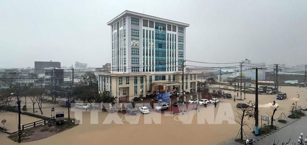 Khu vực đường Điện Biên Phủ, phường Quy Nhơn Đông ngập sâu trong nước lũ. Ảnh: Quang Thái- TTXVN